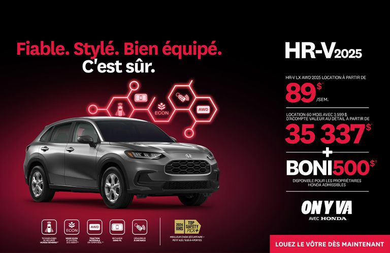Le Honda HR-V est un véhicule utilitaire sport spacieux et polyvalent qui offre une gamme complète de caractéristiques de sécurité et de connectivité, ainsi que la polyvalence du système Magic Seat. Le HR-V est un petit VUS conçu pour une jeune famille et il suivra votre style de vie actif.